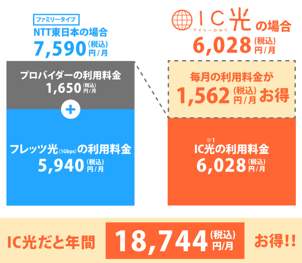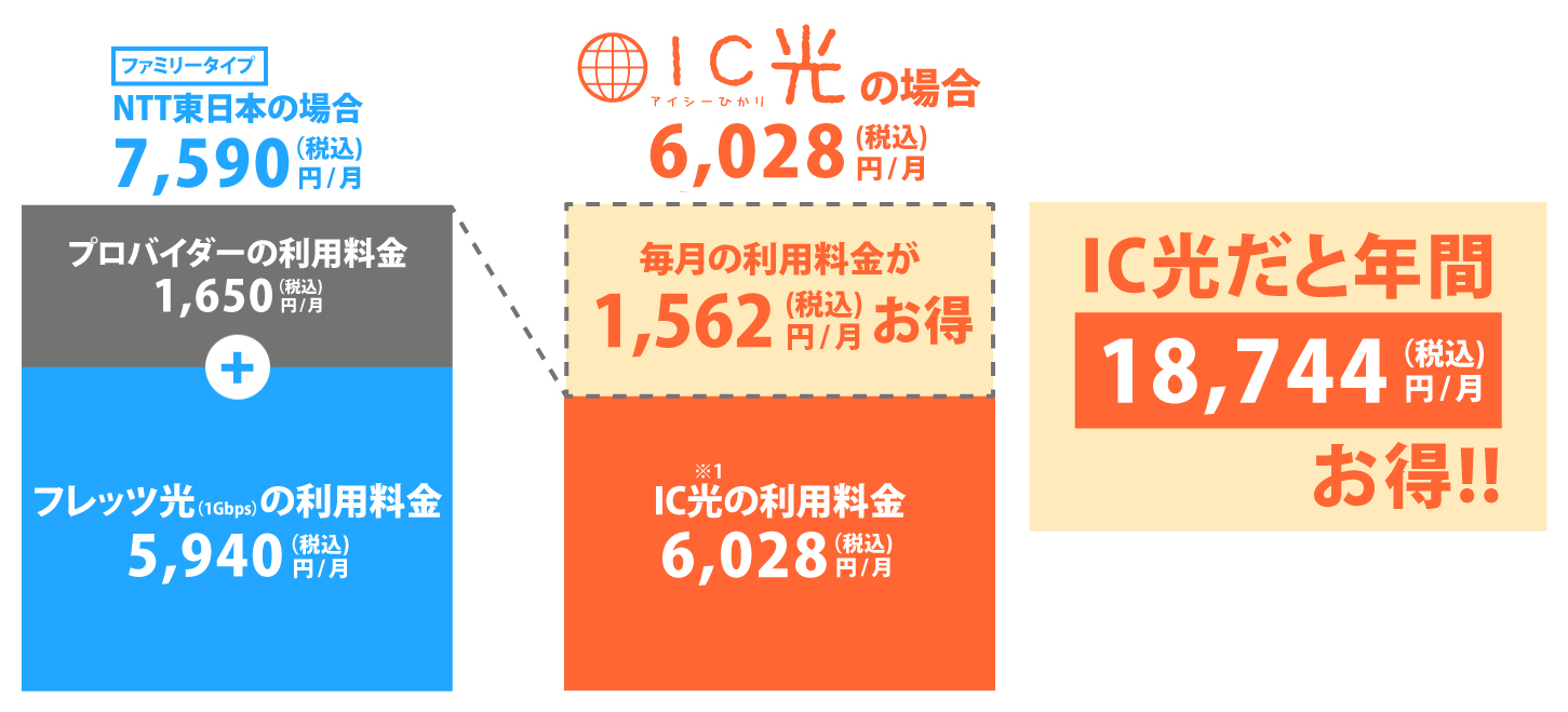 ※1. IC光 ファミリープランの場合。 ※. 料金比較はあくまでも一例です。すべてのお客様が該当する訳ではございません。詳しくはお問い合わせください。