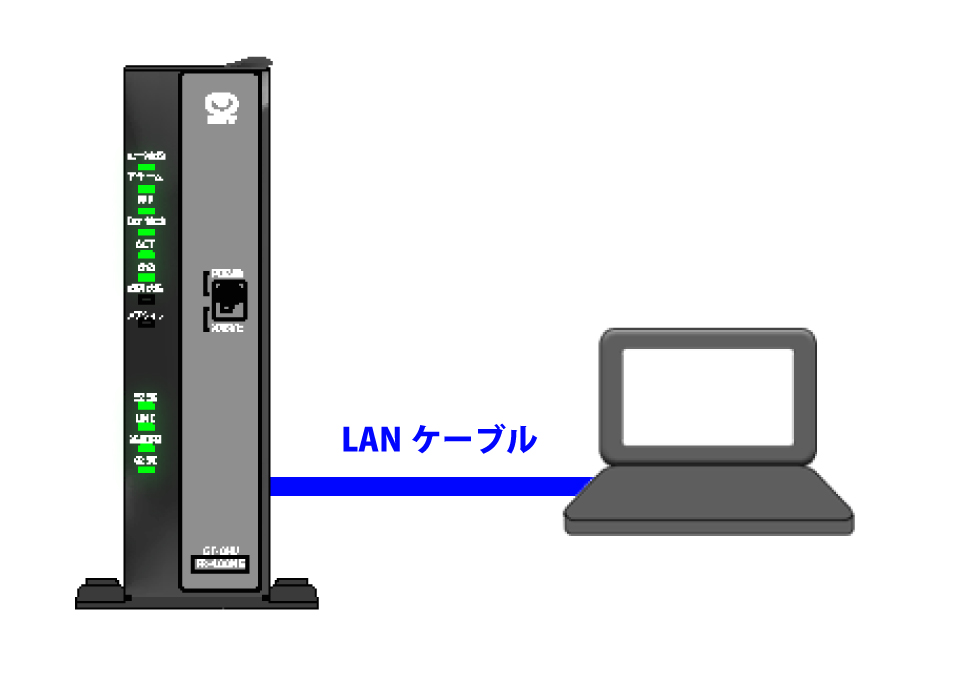 ※. パソコンとルータをLANケーブルで接続した状態にするか、無線LANでもいいので