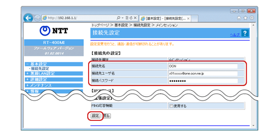 ひかり電話ルータPR-400MIと通信ができている状態であることを想定しての設定方法です。